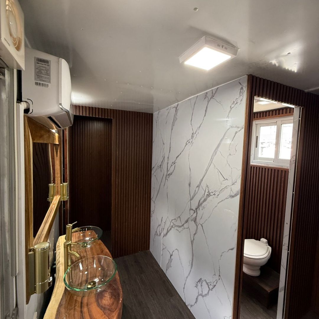 Sanitario VIP diseñado para brindar una experiencia premium en eventos sociales o corporativos. Su diseño elegante, materiales de alta calidad y amenidades integradas lo convierten en la mejor opción para clientes que buscan comodidad, limpieza y presentación impecable.