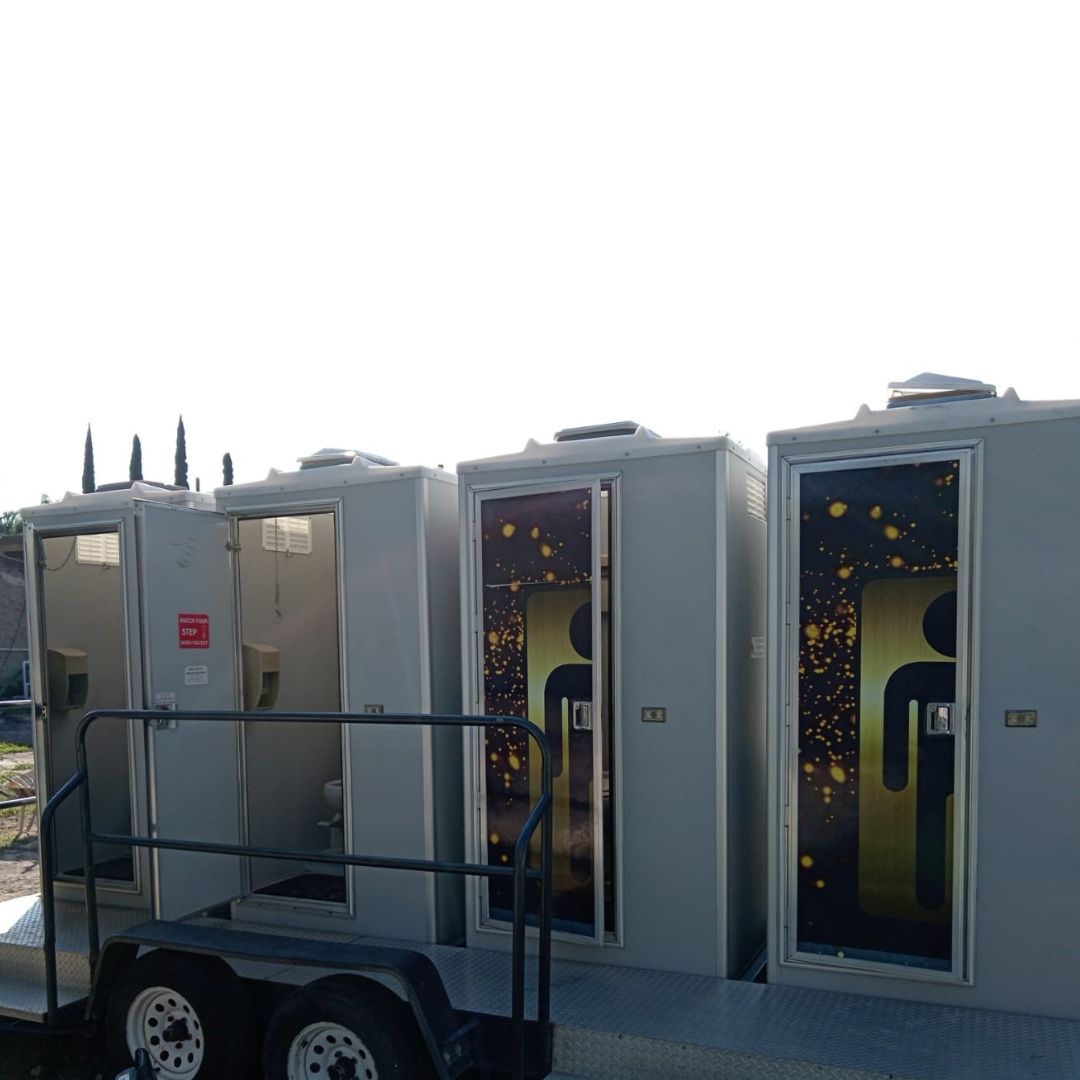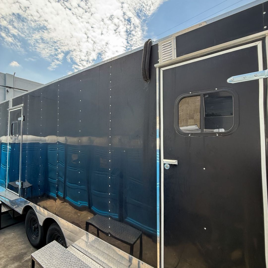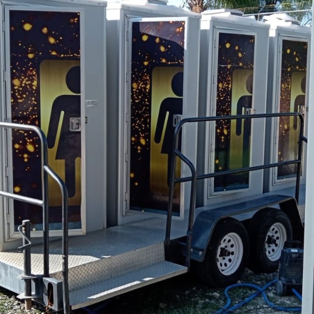 Sanitario móvil de lujo, montado sobre remolque con doble cabina. Diseñado para ofrecer una experiencia higiénica, cómoda y elegante en eventos que requieren alto nivel de presentación. Cada cabina está completamente equipada con amenidades premium para brindar privacidad y confort.