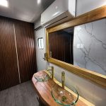Nuestro modelo más exclusivo. Este remolque está diseñado para brindar una experiencia sanitaria tipo «restaurante de alta gama». Divide el espacio en dos áreas totalmente independientes: una para mujeres y otra para hombres, ambas equipadas con amenidades completas, acabados elegantes y aire acondicionado. Es la opción ideal cuando el confort, la capacidad y la presentación importan.